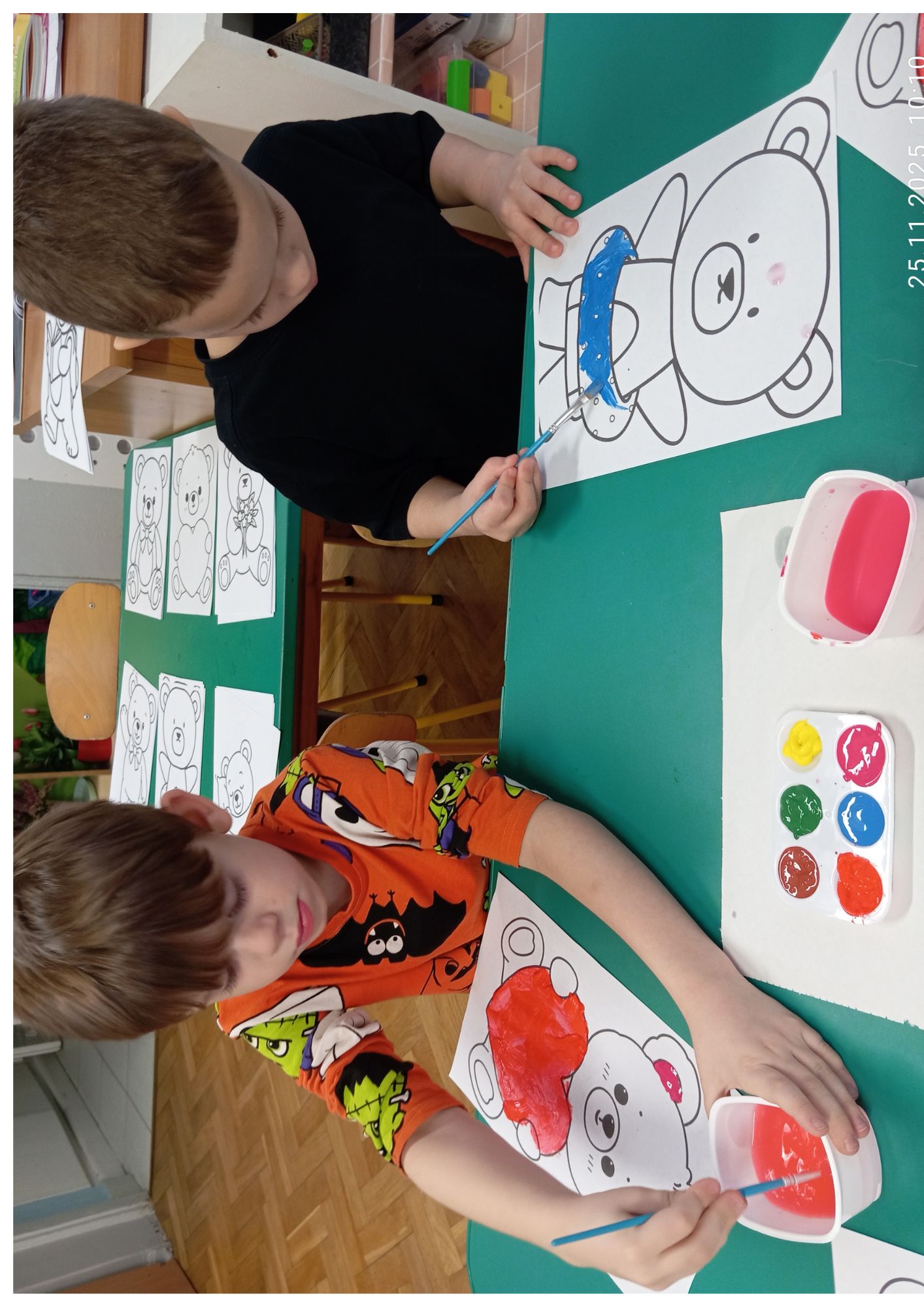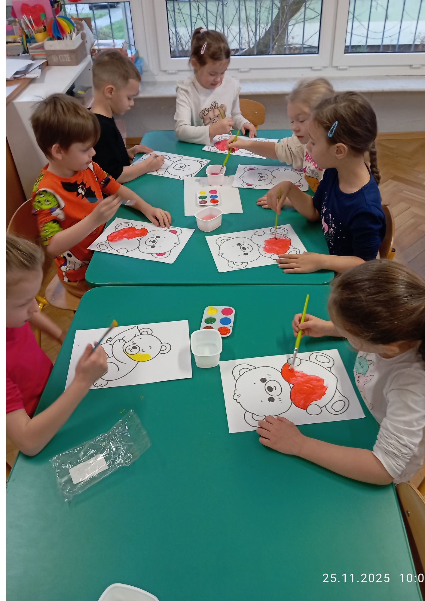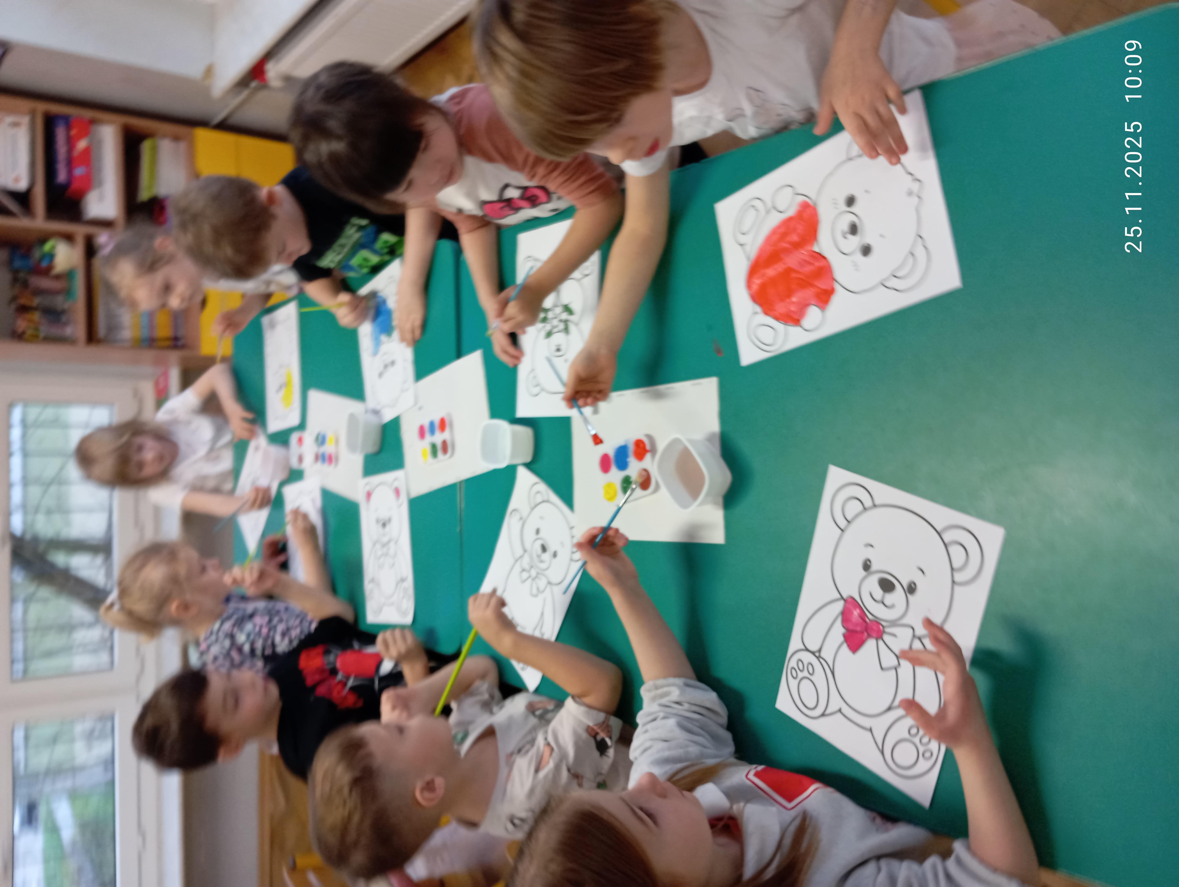 Przedszkolaków odwiedził wyjątkowy gość – Kubuś Puchatek, który wprowadził wszystkich w cudowny, misiowy nastrój. Dzieci bawiły się, śpiewały i tańczyły ze swoimi ukochanymi pluszakami, a także brały udział w kreatywnych zajęciach plastycznych. Malowały farbami, ozdabiały drewniane misie i tworzyły własne misiowe prace. To był dzień pełen uśmiechu, przygód i twórczej zabawy.