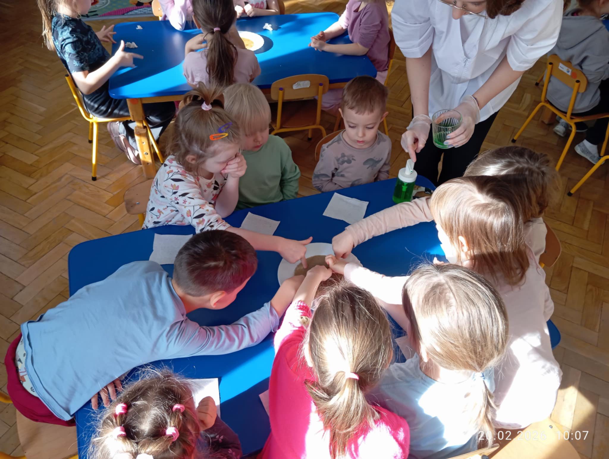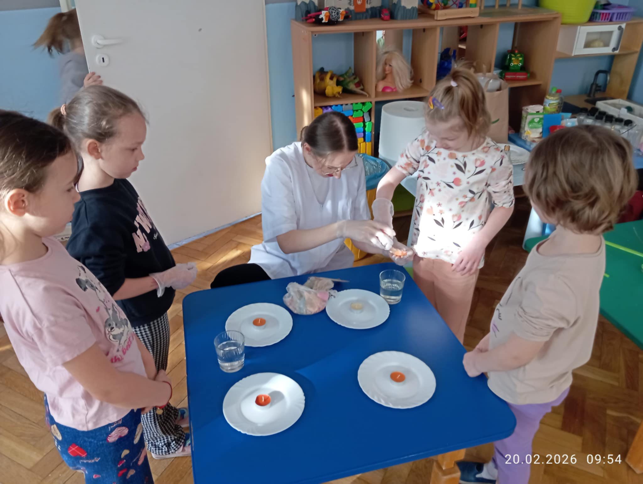 Pani Ada – studentka Wydziału Fizyki, Astronomii i Informatyki Stosowanej UJ (biofizyka, fizyka medyczna) – przeprowadziła dla dzieci ciekawe warsztaty z wodą. Była to pełna eksperymentów i odkryć przygoda z nauką. Dziękujemy Pani Izie za organizację spotkania.