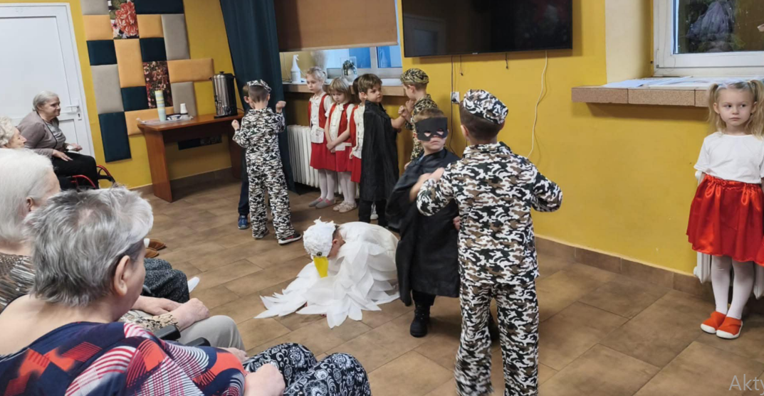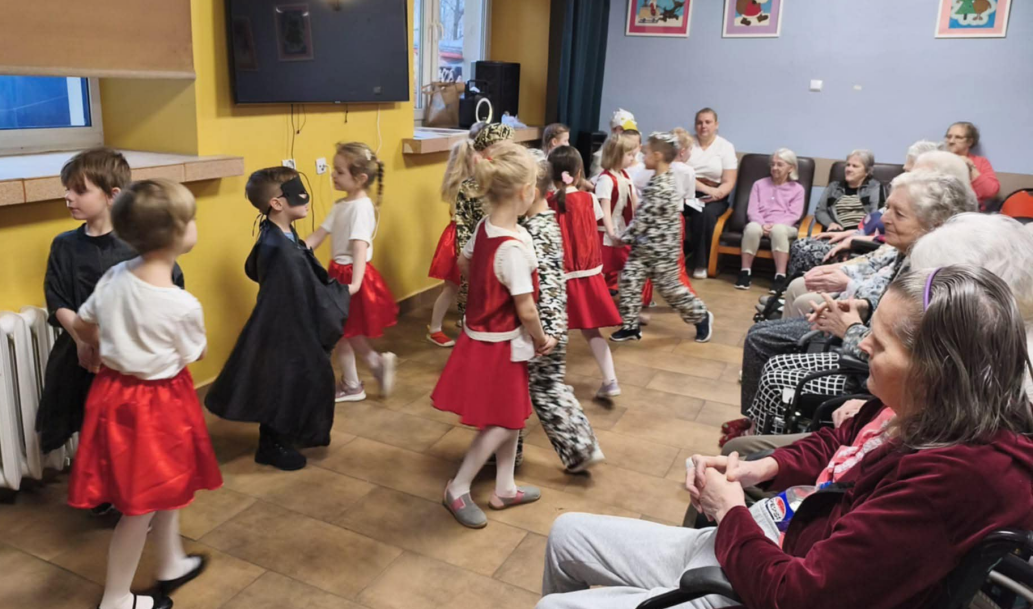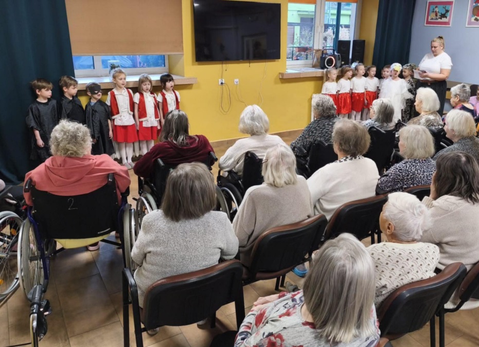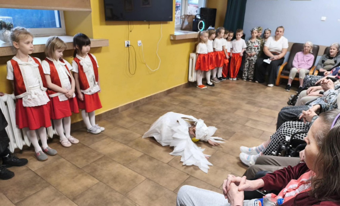 Wizyta w Domu Pomocy Społecznej była dla dzieci niezwykle wartościowym doświadczeniem. Przedszkolaki mogły nie tylko zaprezentować swoje umiejętności podczas występu „Pisk Białego Orła”, lecz także doświadczyć, jak ważną rolę pełni okazywanie życzliwości, szacunku i pamięci osobom starszym. Kontakt z seniorami rozwija w dzieciach empatię, wrażliwość społeczną oraz uczy, jak wielką wartość mają międzypokoleniowe relacje. Dla wielu dzieci była to pierwsza okazja, by zobaczyć, jak ich występ może realnie wpłynąć na samopoczucie innych osób. Wyjście do DPS było piękną lekcją dobroci, otwartości i odwagi, a jednocześnie niezwykłym przeżyciem, które na długo pozostanie w ich pamięci.