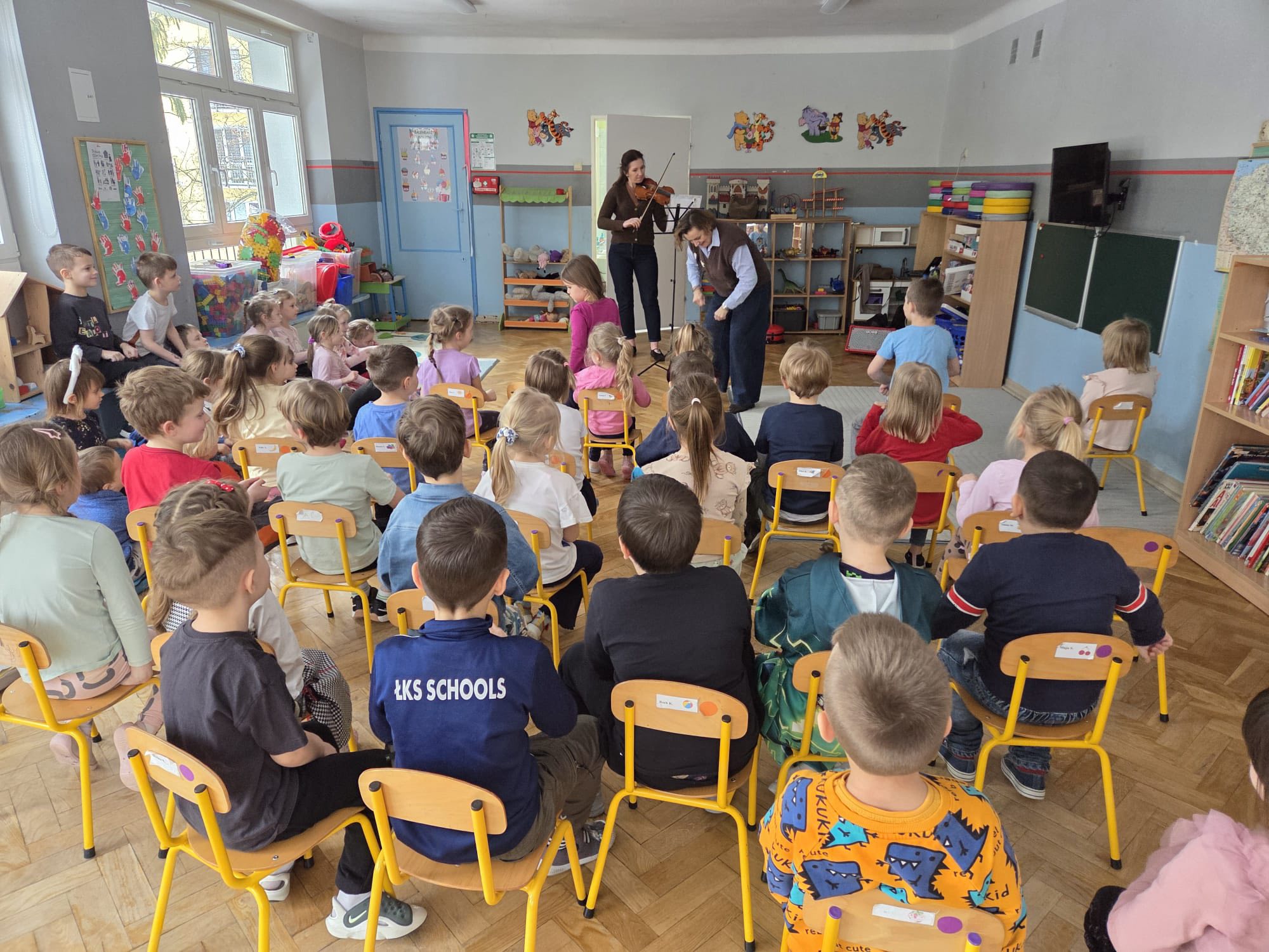 Podczas spotkania z Panią Muzyką dzieci poznały skrzypce – ich wygląd, budowę oraz brzmienie. Miały okazję posłuchać gry na żywo i dowiedzieć się, jak powstaje dźwięk, rozwijając wrażliwość muzyczną i zainteresowanie instrumentami. Dziękujemy Radzie Rodziców za zorganizowanie spotkania.