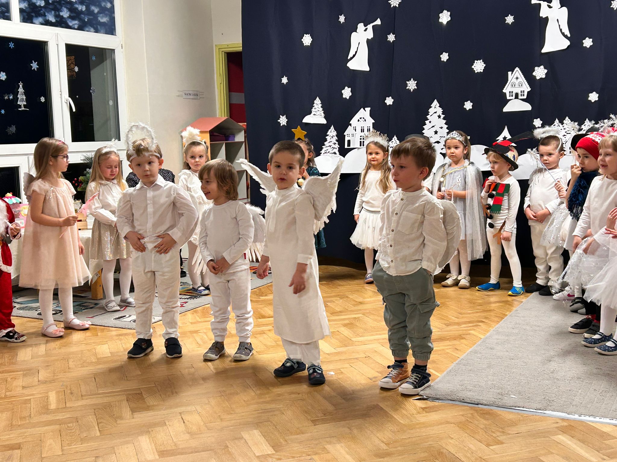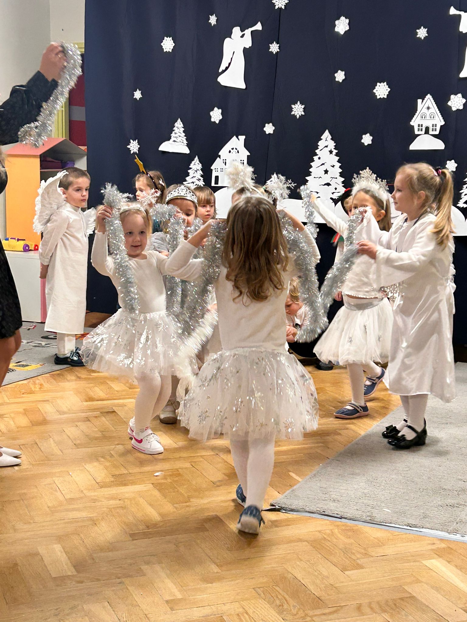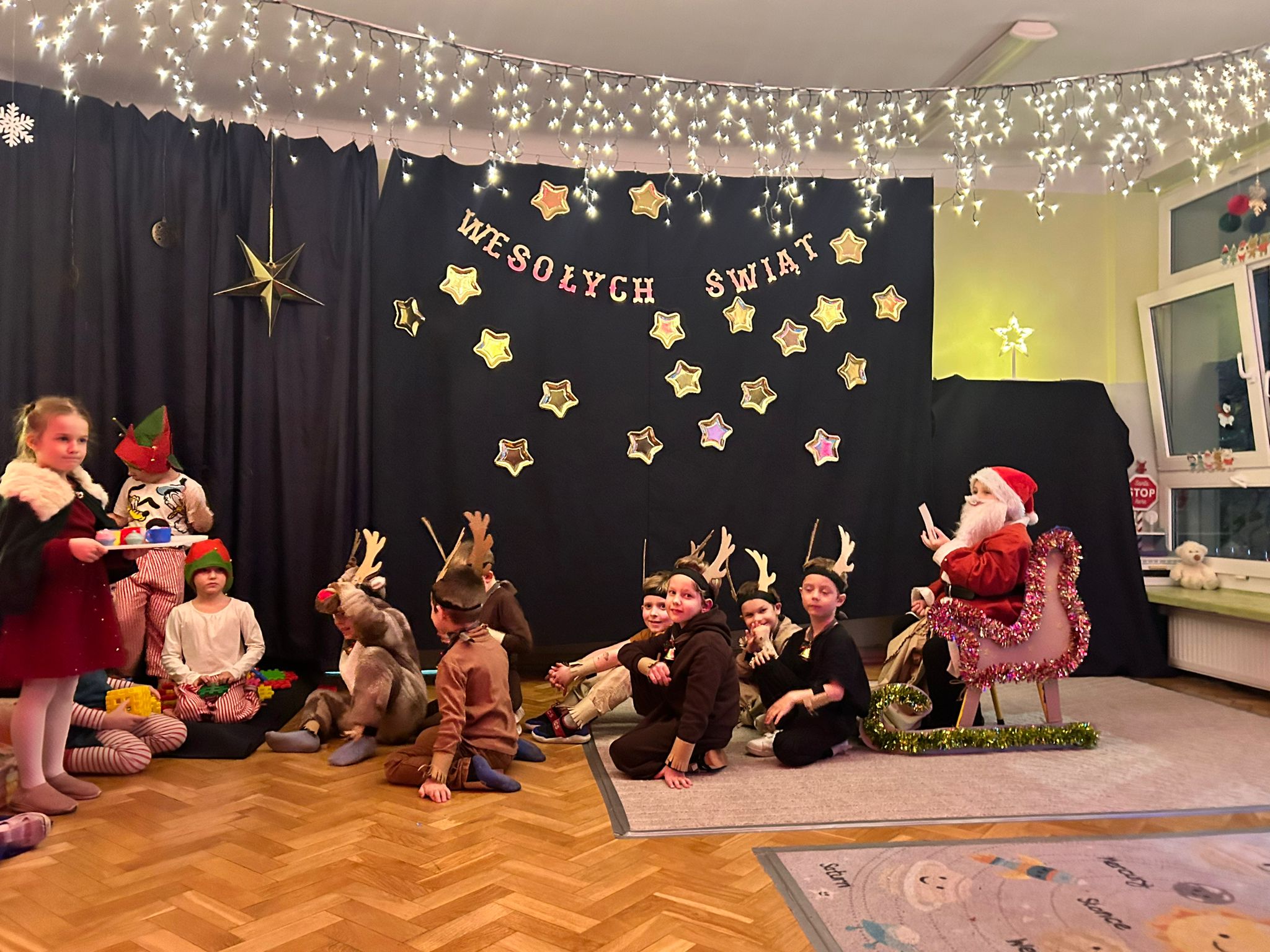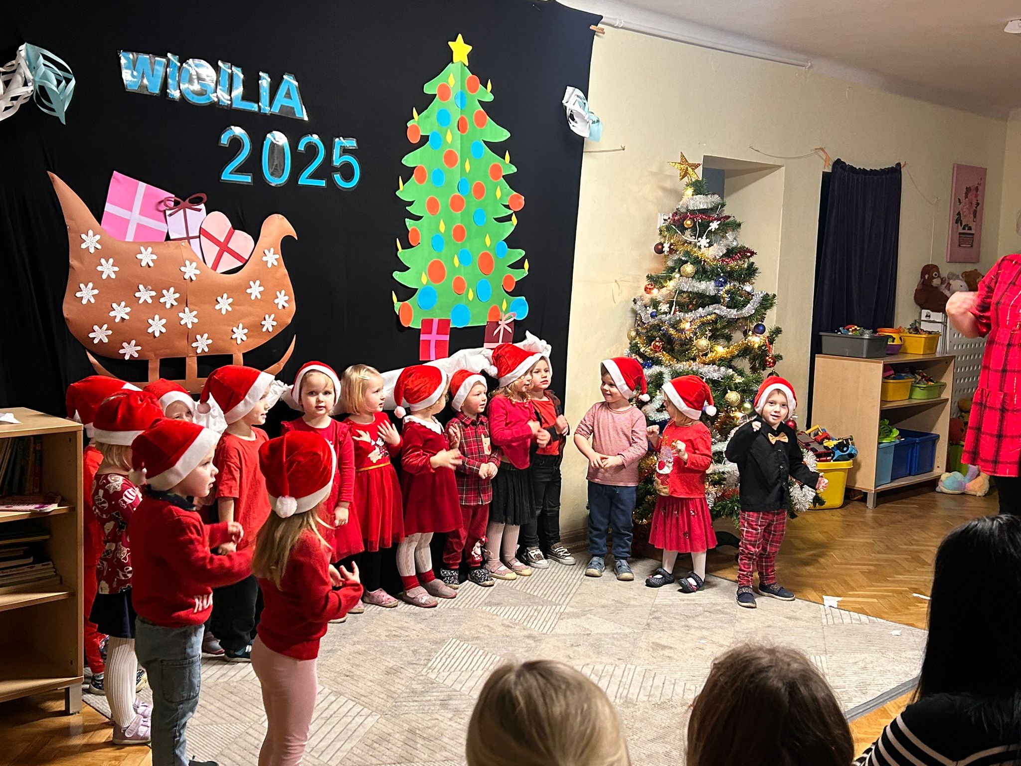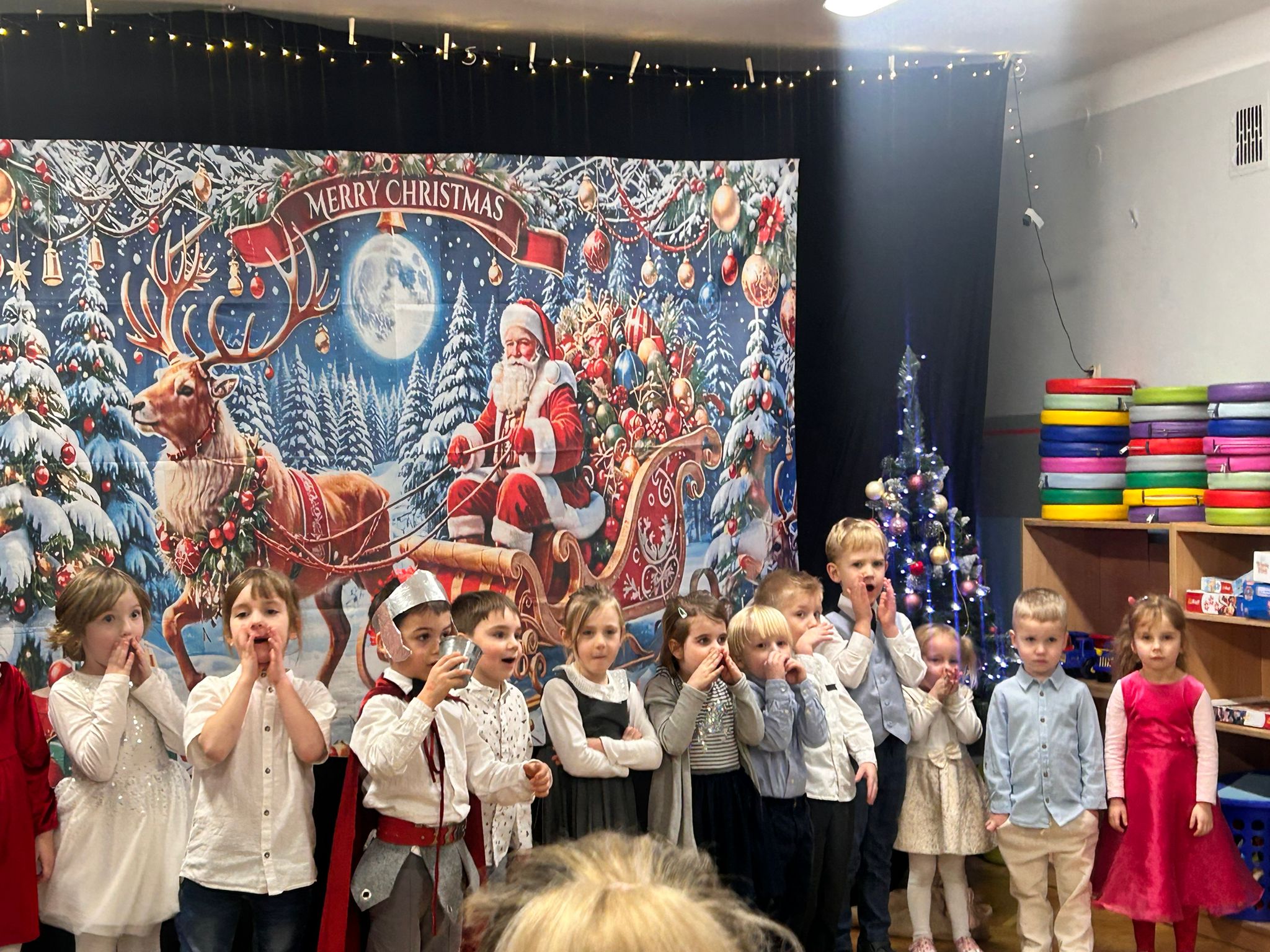 Podczas tygodnia spotkań wigilijnych dzieci zaprezentowały piękne, świąteczne występy, wcielając się m.in. w Mikołaje, aniołki, renifery, elfy, bałwanki, śnieżynki oraz choinki. Były piosenki, tańce i radosna atmosfera, a całość wprowadziła wszystkich w wyjątkowy, bożonarodzeniowy nastrój.