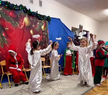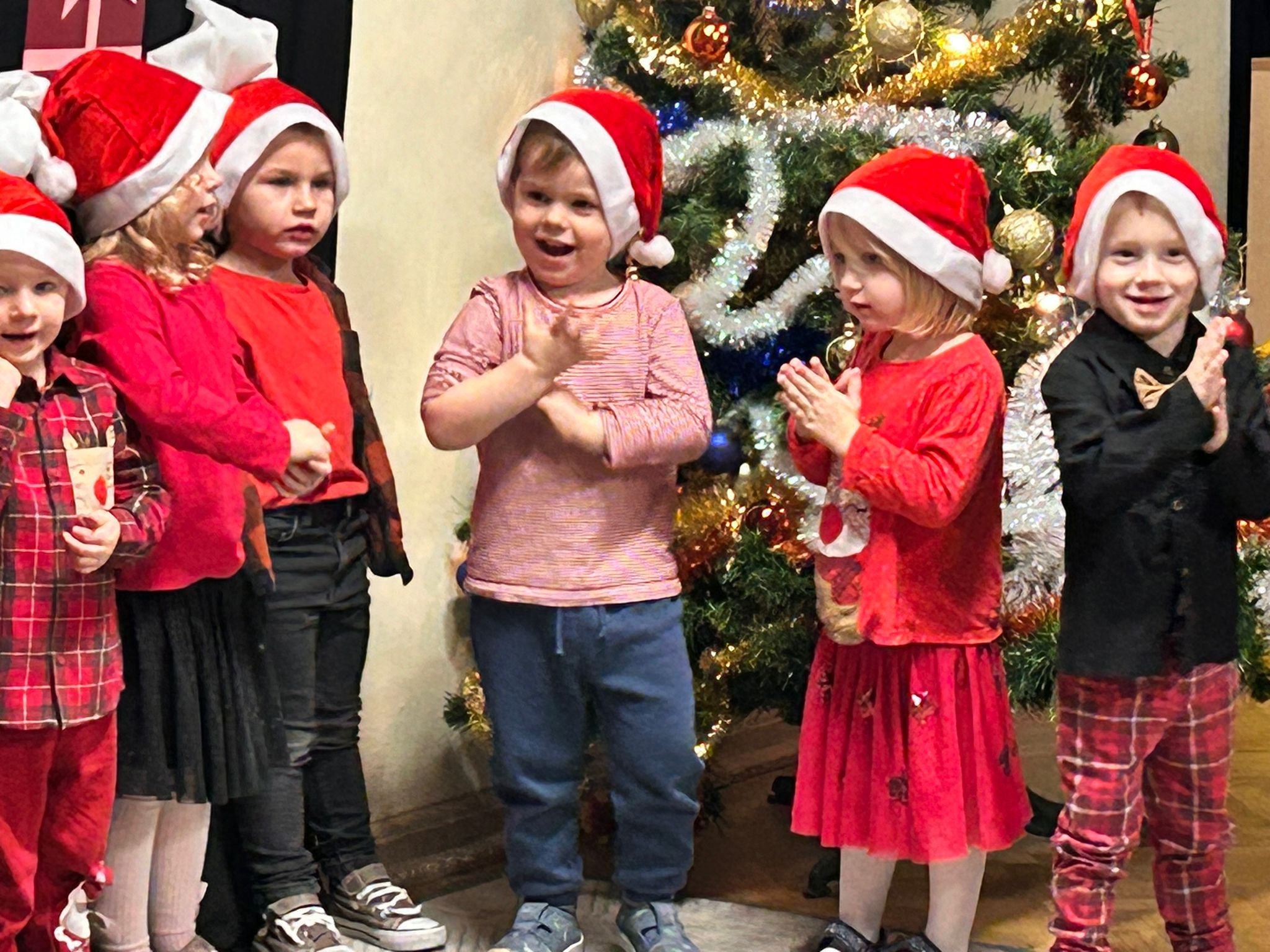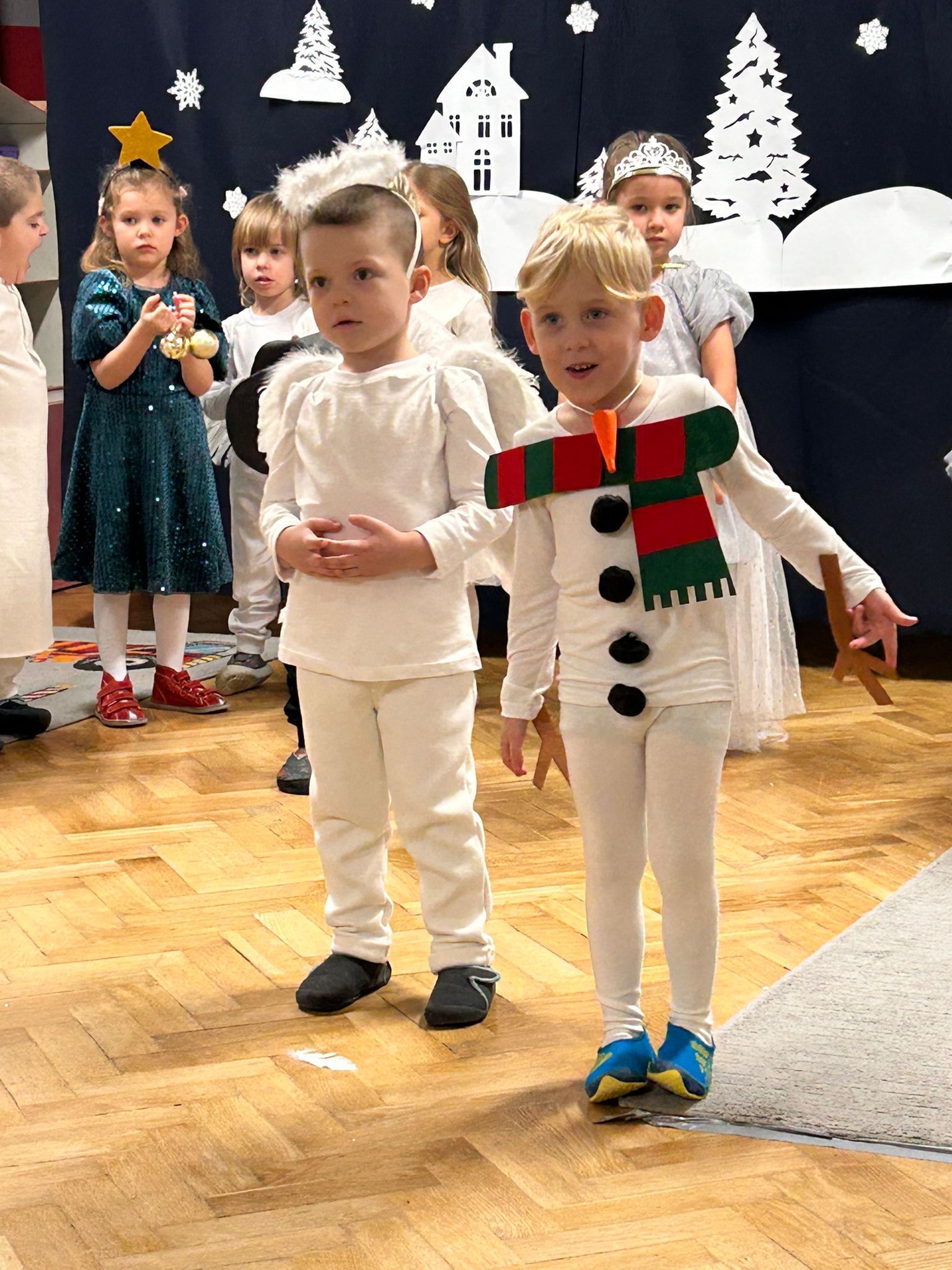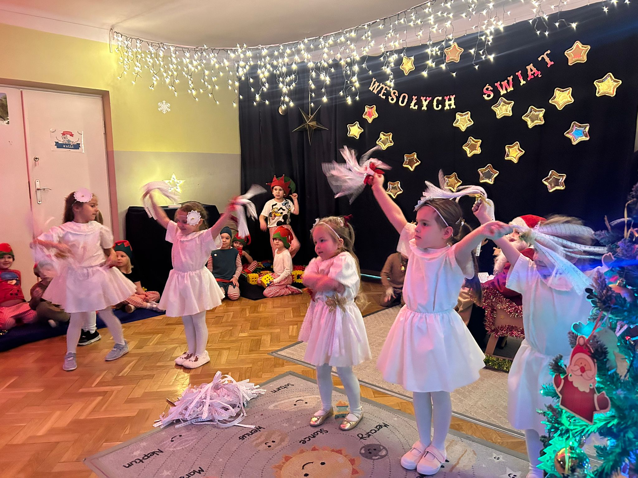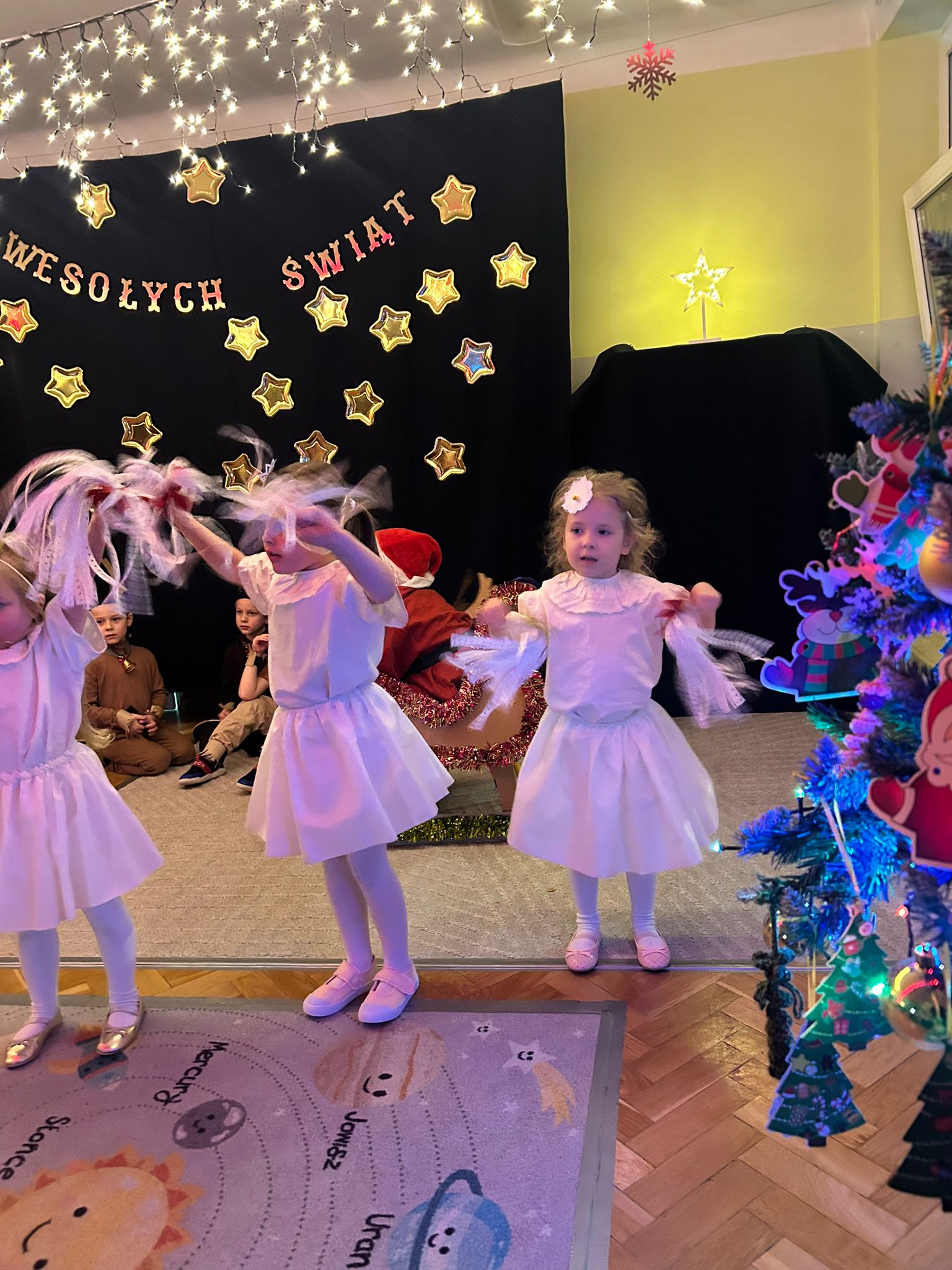 Podczas tygodnia spotkań wigilijnych dzieci zaprezentowały piękne, świąteczne występy, wcielając się m.in. w Mikołaje, aniołki, renifery, elfy, bałwanki, śnieżynki oraz choinki. Były piosenki, tańce i radosna atmosfera, a całość wprowadziła wszystkich w wyjątkowy, bożonarodzeniowy nastrój.