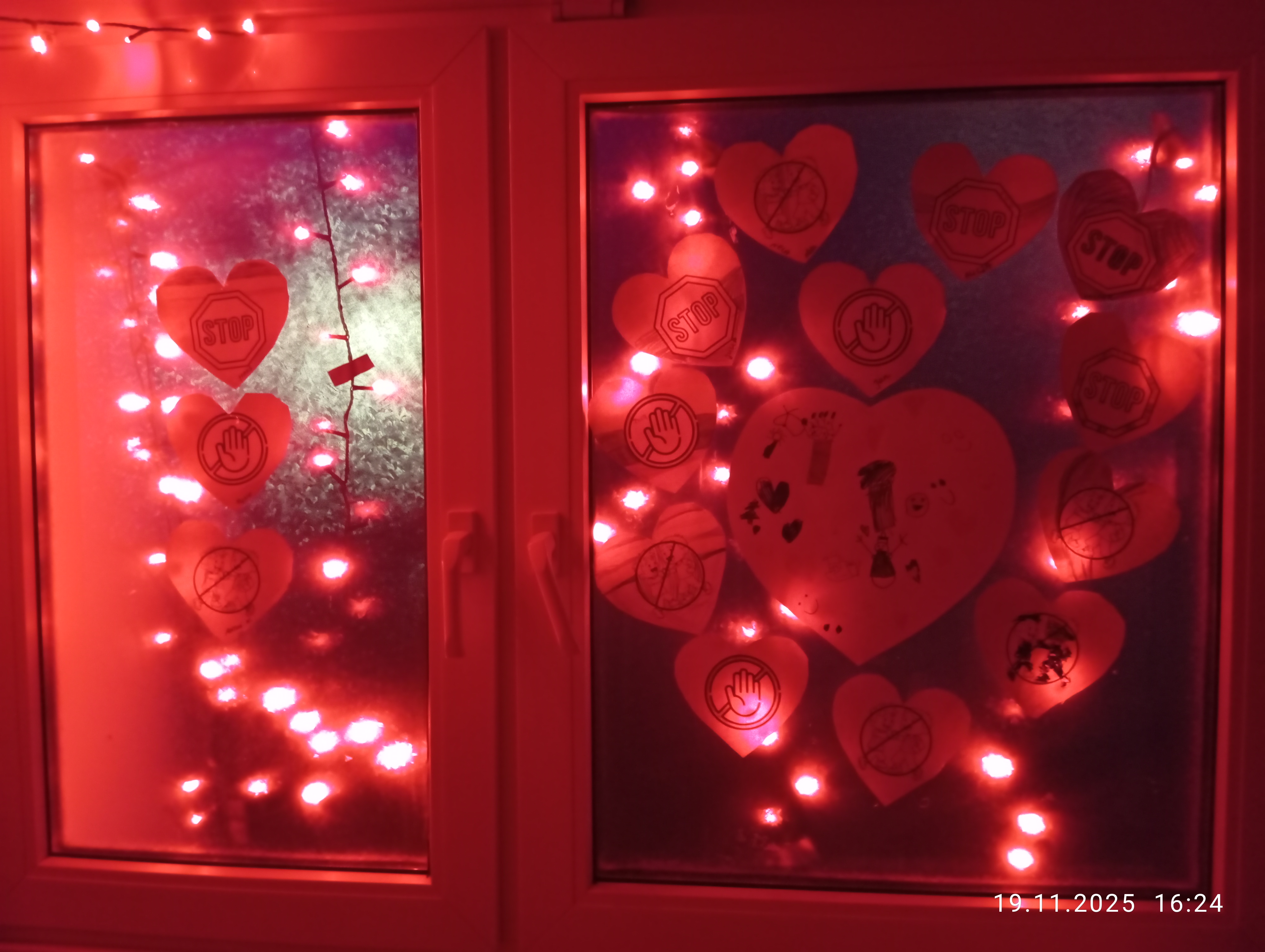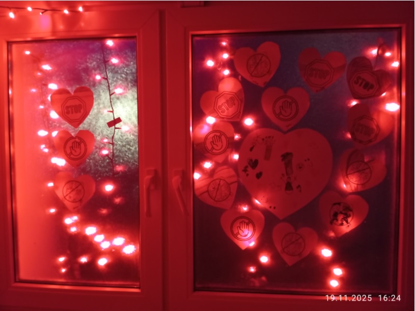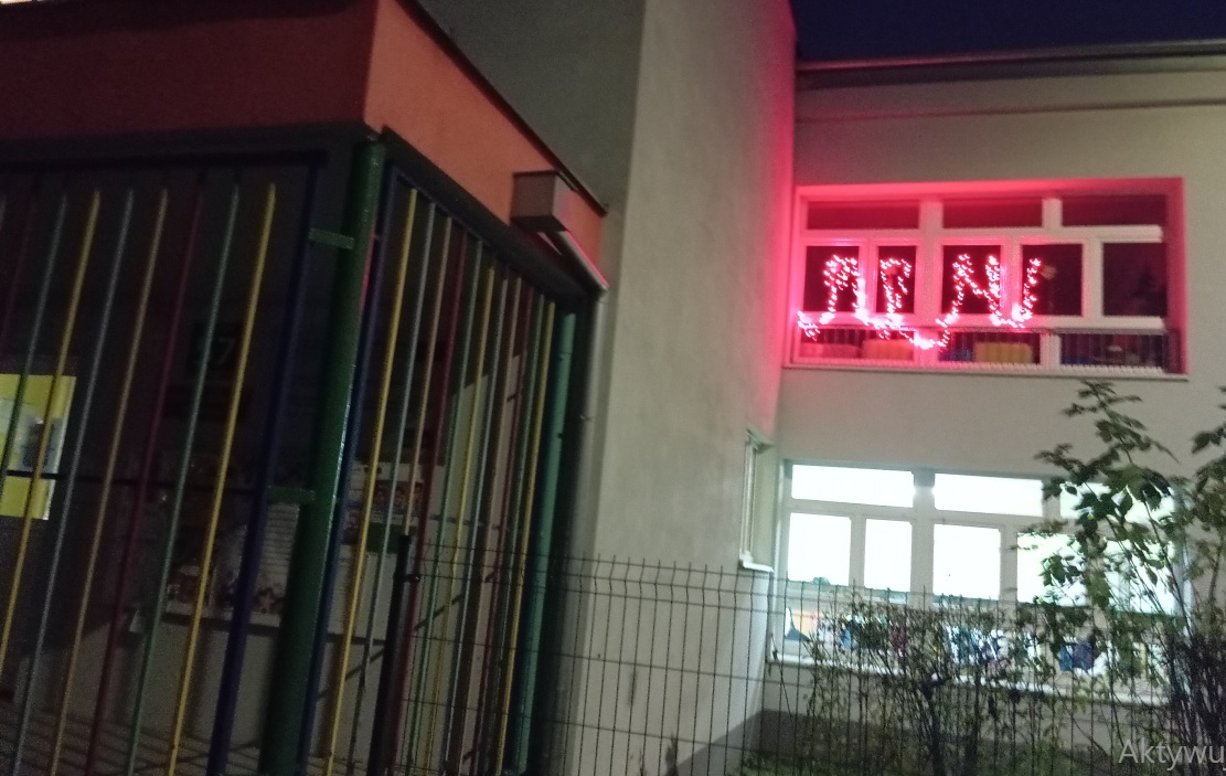 Zgodnie z wytycznymi nasze przedszkole zostało dziś oświetlone na czerwono, dając wyraźny znak sprzeciwu wobec przemocy.